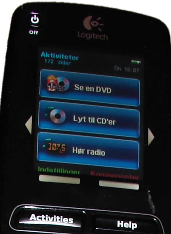 Så for at se en dvd-film trykker du bare på "Se dvd". Mere skal der ikke til for at tænde fjernsynet og indstille det til rette input, tænde og starte dvd-afspilleren, tænde forstærkeren og sætte den til rette signalkilde - og sætte fjernbetjeningens knapper til efterfølgende at styre dvd-afspilleren.