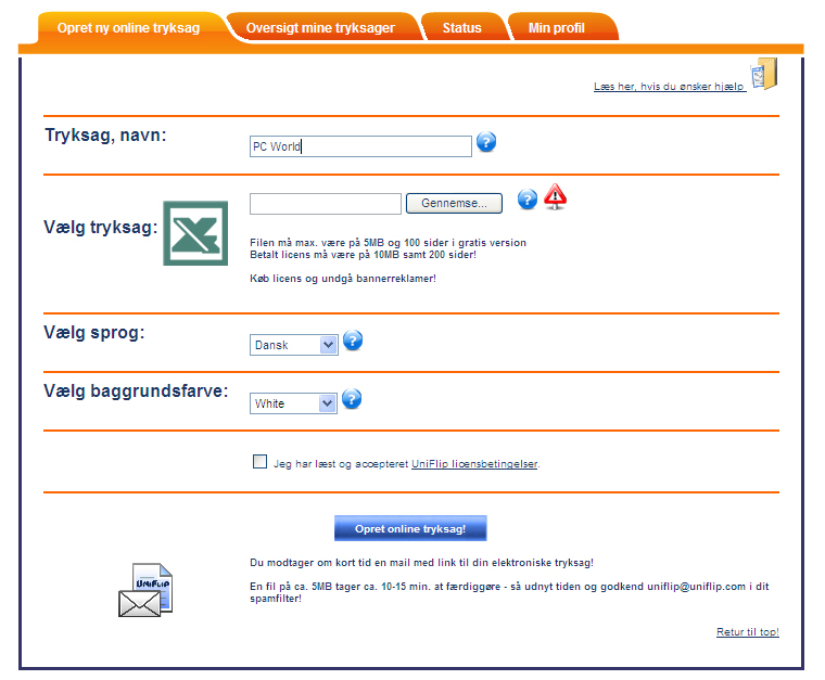På websiden UniFlip.dk uploader du ganske enkelt dine egne Word-, PDF- eller PowerPoint-filer.