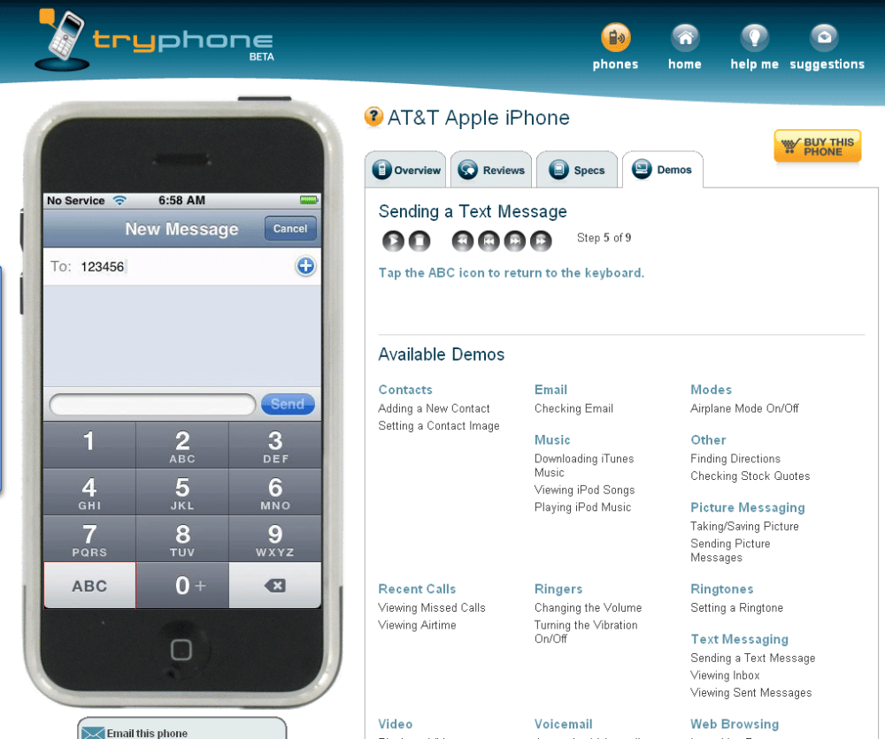 På websiden www.tryphone.com kan du prøve din næste mobil interaktivt og blive klogere på, om det er den, du skal investere i.