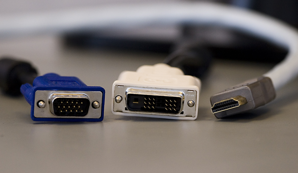 Til skærmen medfulgte de fleste kabler, vi skulle bruge, men ikke et DVI-kabel. Skal du bruge skærmen som monitor, så skal du bruge lidt ekstra penge på det manglende kabel.