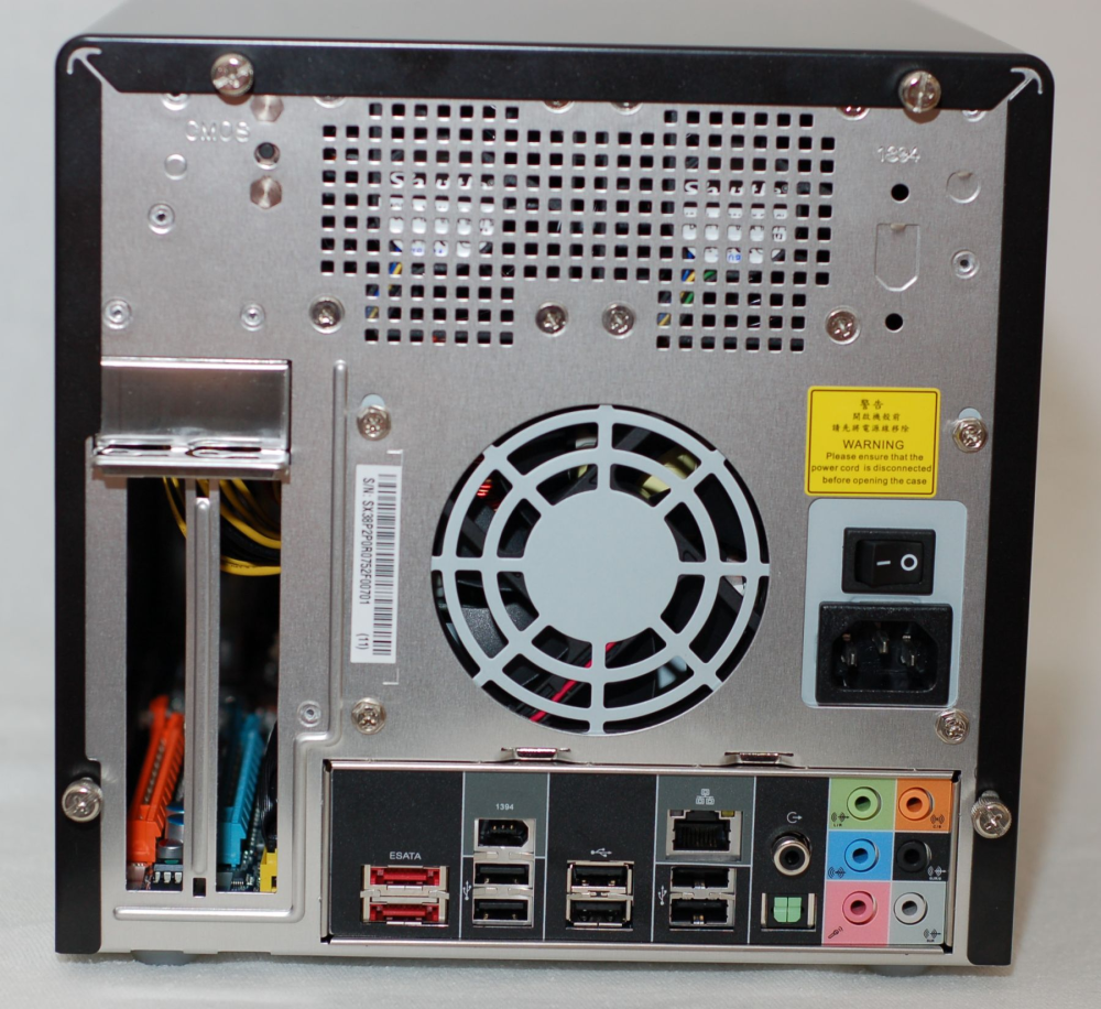 På bagsiden udmærker Shuttlen sig med to eSATA-porte til ekstern lagerplads, seks USB 2.0-forbindelser, FireWire (IEEE 1394), Gigabit Ethernet samt digitale og analoge stik fra det indbyggede 7.1-kanalers lydkort.
