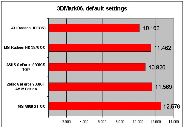 Endelig tester vi i det klassiske 3DMark06, der trods kritiske røster tjener sit formål glimrende: Nemlig at fremhæve ydelsesforskellen kortene imellem. Grundet dens store popularitet tjener 3DMark også som et referencepunkt for brugeren, der nemt kan teste sin egen maskine.