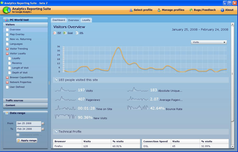 Det smarte er, at AIR kører uafhængigt af platform. Det vil sige, at et program, som eksempelvis Google Analytics Reporting Suite der kan ses ude til højre, virker både med Windows og Mac og på sigt også Linux.
