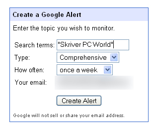 Det sker via Google Alert, der automatisk sættes op til en brugerdefineret søgning. Løbende vil Google holde øje med nettet, og resultaterne sendes direkte til din mail. Du kan selv bestemme, hvor ofte det skal ske.