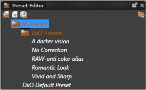 Når man arbejder med DxO Optics Pro kan man enten lade programmet køre fuldautomatisk, hvor man blot skal vælge nogle få parametre, som eksempelvis hvilken mappe de færdige fotos skal gemmes i, i hvilket størrelse/format og navn.