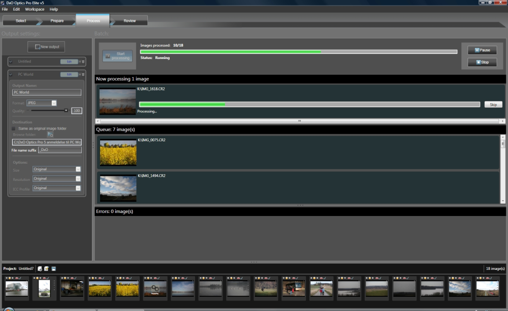 Muligheden for at lade DxO Optics Pro stå og passe sig selv, mens det kører en større batch-konvertering er meget attraktivt for den lidt dovne fotograf. Selv om der er tale om en batch-konvertering behandles hvert enkelt foto naturligvis individuelt.