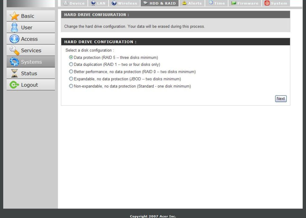 RAID er til dels en løsning på problemet, og Aspire easyStore understøtter da også valgmulighed mellem RAID 0, 1, 5 og JBOD.