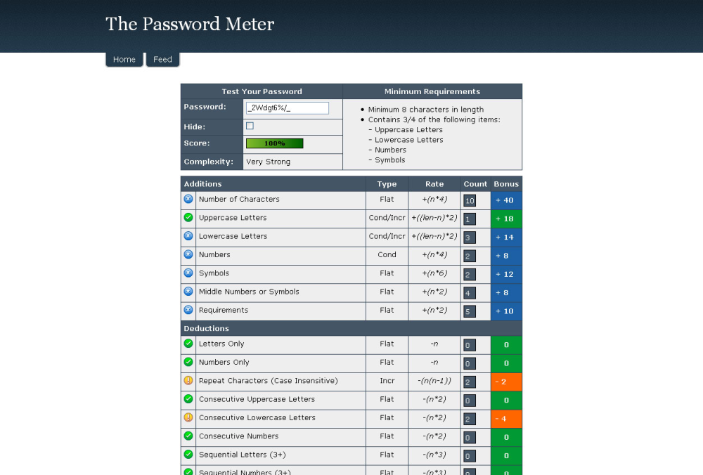 For at skabe et sikkert kodeord skal du benytte en kombination af bogstaver (store og små), tal og tegn, og på Password Meter bliver det næsten til en lille leg at ramme den højeste score – særligt hvis det skal være til at huske udenad.