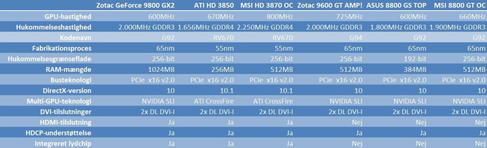 De to grafikprocessorer er hverken 8800 GT eller GTS, men de befinder sig ydelsesmæssigt et sted imellem. Kortet har en gigabyte DDR3-ram fordelt på de to GPU’er.