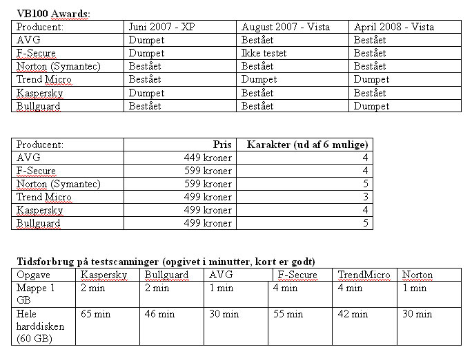 Effektivitet dækker over, hvor god virusscanneren er til at finde vira. Vi har valgt at bruge det anerkendte test-lab Virus Bulletin, der uddeler VB100 Awards. En award betyder, at produktet har identificeret alle vira i omløb på det tidspunkt, den pågældende test blev udført.