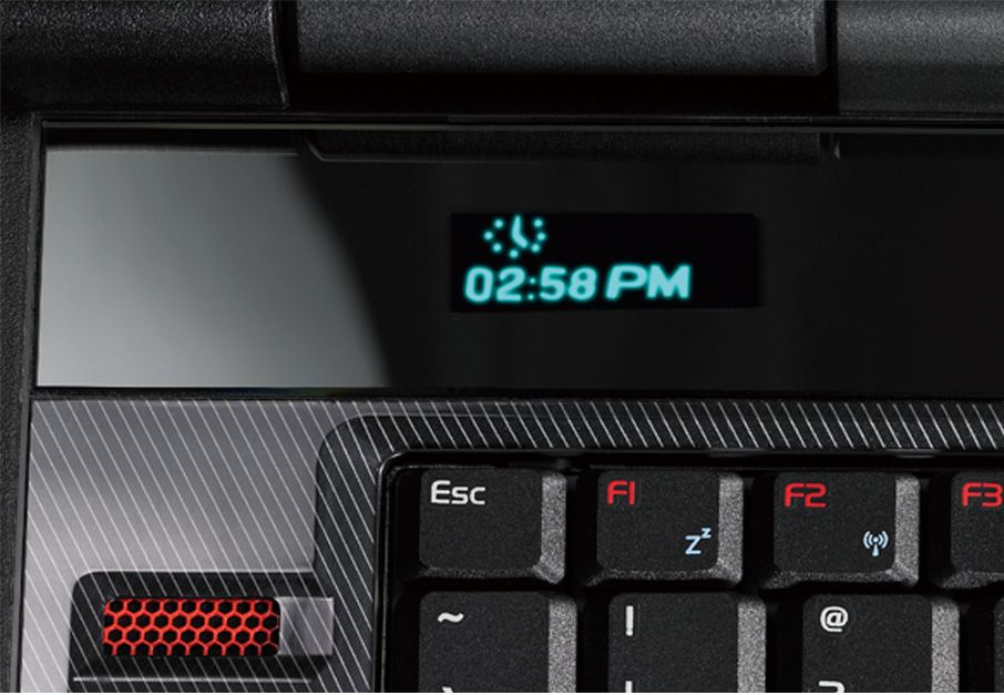 Dioderne burde kun blinke, når computeren skal afvikle spilgrafik, men vi kan ikke afvise, at Windows Aero – brugergrænsefladen i Vista – suger nok kræfter ud af grafikkortet til, at den bærbare bogstaveligt talt ser rødt.