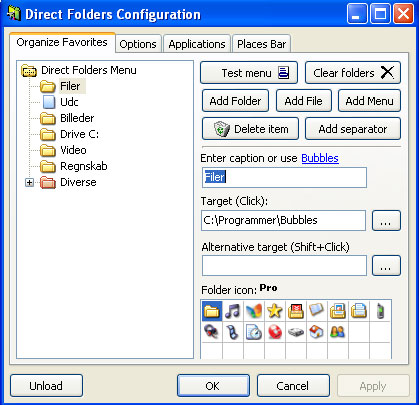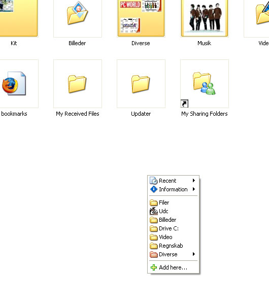 Det fungerer ved, at du dobbeltklikker på det tomme område i Stifinder eller på skrivebordet, og så dukker Direct Folders op. Der kan du med et enkelt klik hoppe hen i bestemt mappe eller åbne et program.