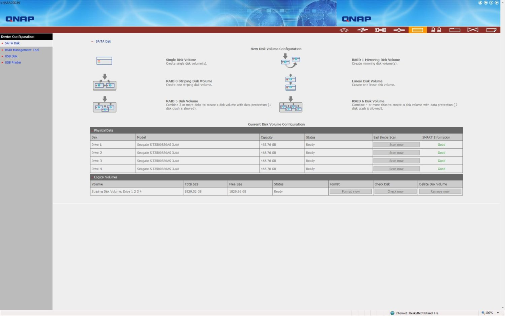 Dernæst gjaldt det om at gennemføre syv korte trin. Processen mundede ud i, at vi opgraderede TS-409 med den nyeste firmware og var dernæst klar til at konfigurere vores drev.