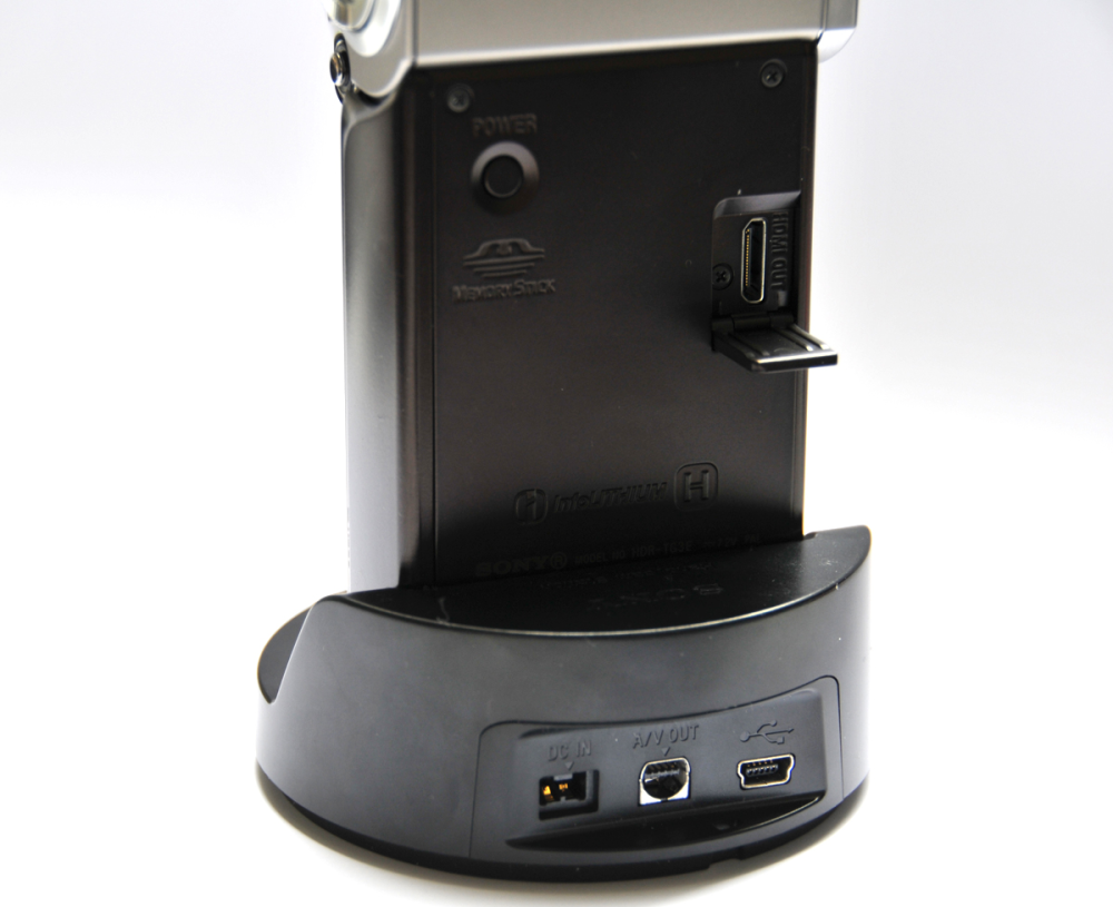 Der følger en dockingstation med til kameraet, og det er trods alt smart tænkt. På den måde kan du lade den stå ved computeren og bare smide HDR-TG3E ned i den. Du behøver ikke at tænke på at finde kablerne frem hver gang.