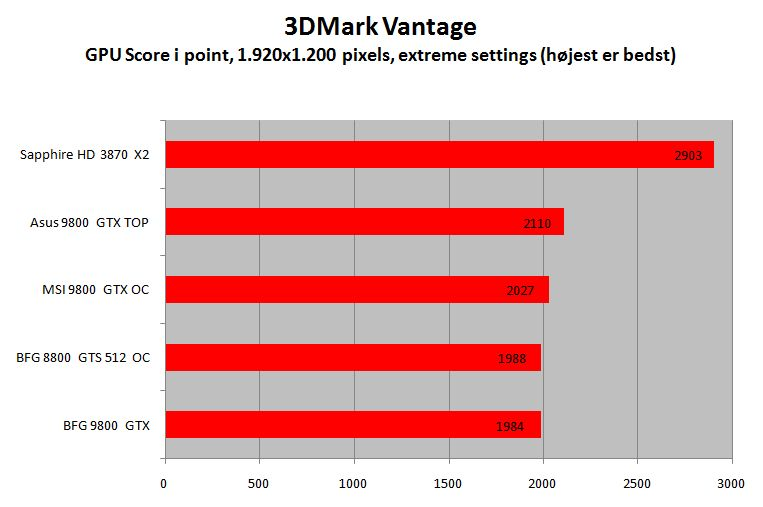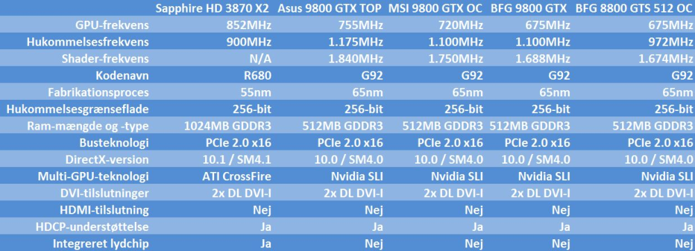 Efter at have nærstuderet grafikkortenes specifikationer, fik vi bange anelser om, at 9800 GTX nok ikke ville have moment nok til at overraske på ydelsen.