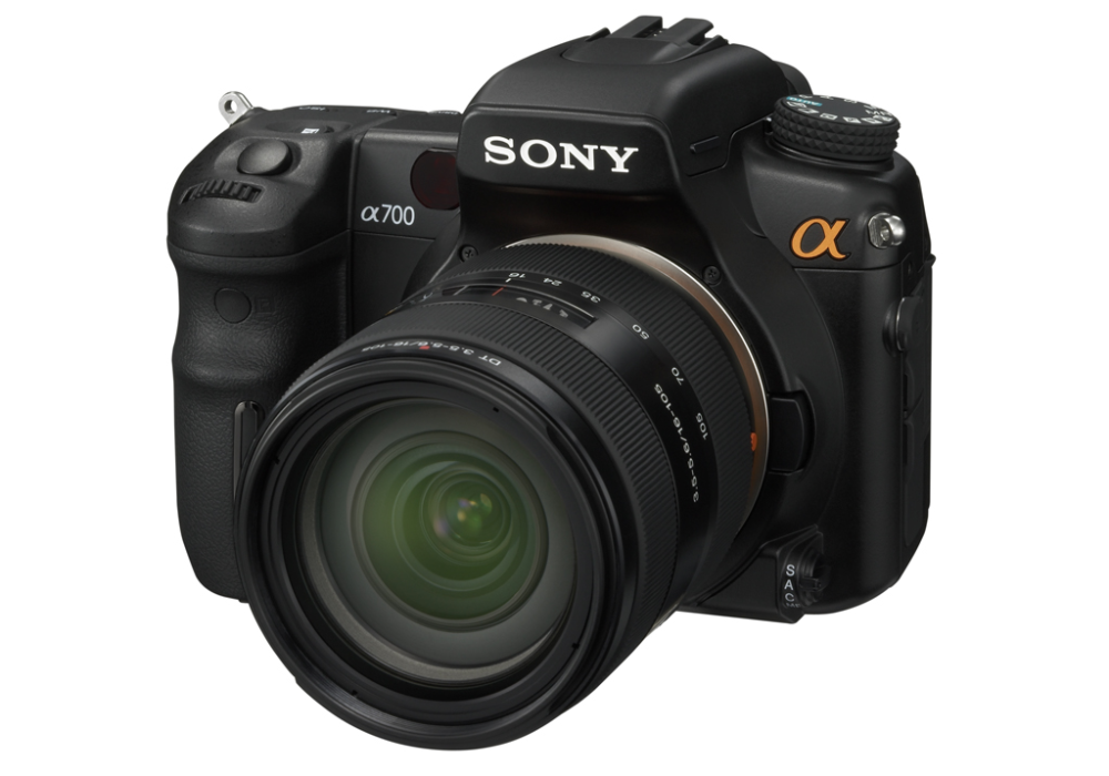Sony A700. Det er et par år siden, at Sony sendte deres første digitale spejlrefleks på gaden. Den seneste model er Sony A700, som vi har en video fra lanceringen af. Opløsningen er på 12,2 megapixel, og kameraet er desuden udstyret med en HDMI-port, så du kan se billeder direkte på fladskærmen. Vi fandt Sony A700 til 9.335 kroner. Til den pris får du et 18-70 mm objektiv med i købet.