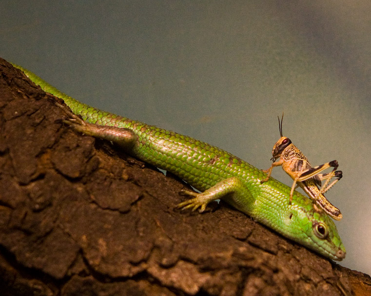 Der er nogle billeder og øjeblikke, som et kompaktkamera bare ikke kan fange. Her en usædvanlig modig eller dum græshoppe fanget i Krybdyrhuset i Københavns Zoo - hvor brugen af blitz ikke er tilladt. Klik for større billede.