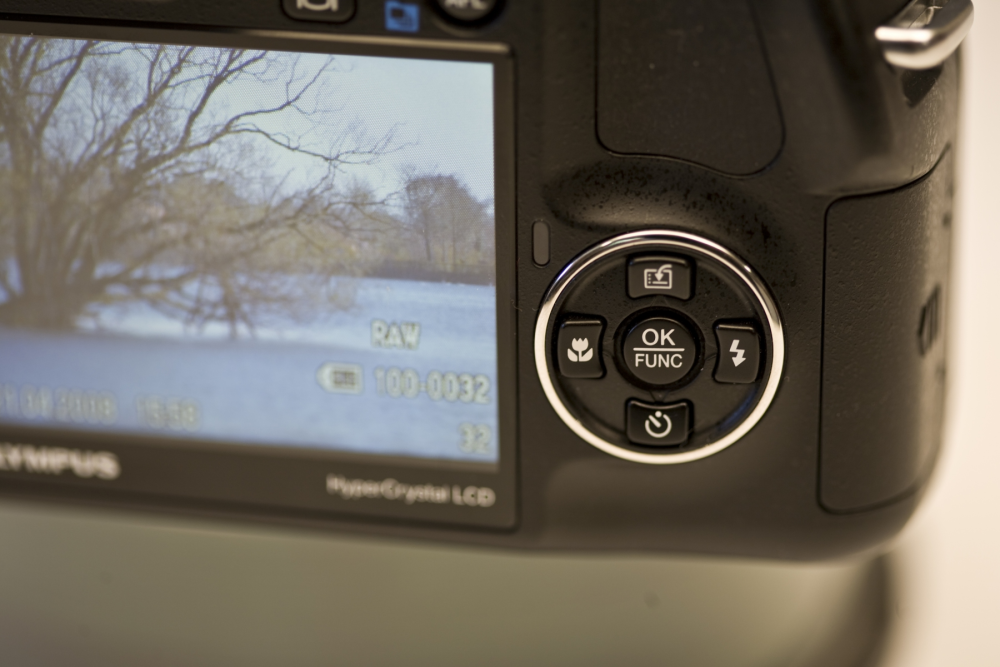 Det kan nemlig forekomme paradoksalt, at man kun kan aktivere makro- eller supermakrofunktionerne, når kameraet er indstillet til fuldautomatik – hvor man til gengæld ikke kan vælge at fotografere i RAW (der på Olympusk hedder ORF).