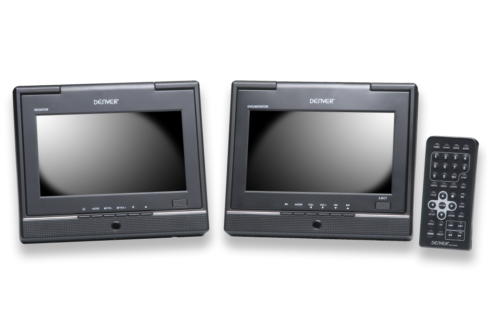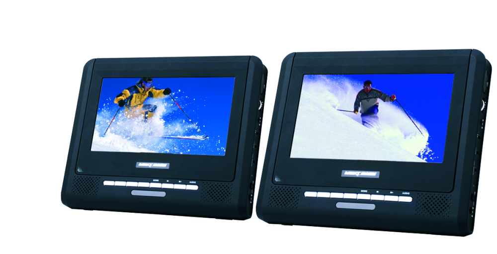 Der er også tale om et sæt bestående af to skærme på syv tommer i diagonalen og i 16:9-bredformat. Der er DVD-drev i den ene enhed, og den anden skærm kopierer blot, hvad der vises på hovedenheden.