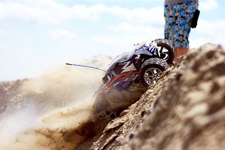 - Jeg var ude at køre en tur langs havnen sammen med min kæreste, da vi så en familie, med hvad der absolut må være en af de sjoveste hobbyer - fjernstyrede biler - alle af den seriøse slags. Det vil sige, at de var peppet op med ekstra udstyr og specialstumper, fortæller Peter Loft Jensen.