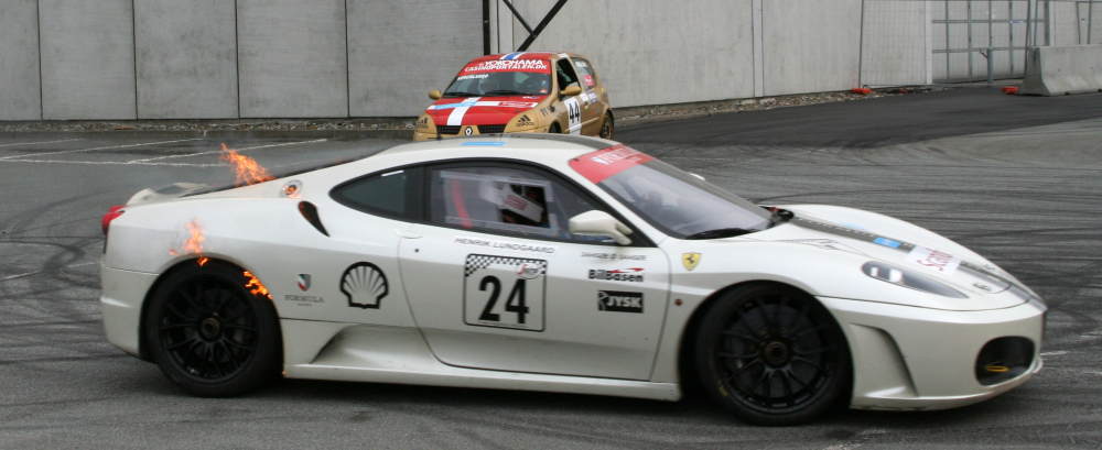 Brian Wolter havde sit Canon 350D med til racer-messen Biler i Bella i marts og fangende en Ferrari med ild i: