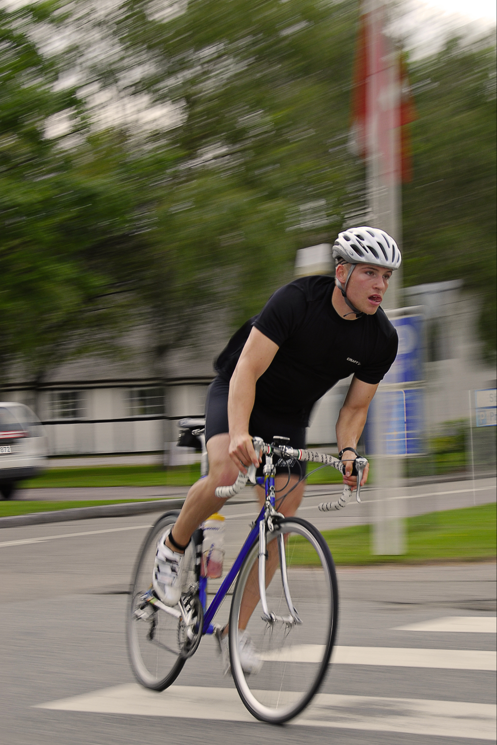 - Lukkertiden satte jeg til 1/30 sekund og blitzen til synkronisering med bagerste lukkergardin. Derfor er hovedmotivet skarpt, mens baggrunden er reduceret til fartstriber. Billedet er beskåret, gjort skarpere og farverne optimerede. Alt sammen i Photoshop, fortæller Rune Fencker.