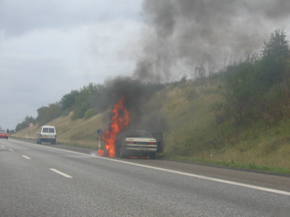 Nogle gange kan der godt være lidt for meget action i hverdagen. I hvert fald for ejeren af den bil, som Tue Jepsen fotograferede med sit Canon Powershot A310 på motorvejen mellem Støvring og Aalborg i september 2004: