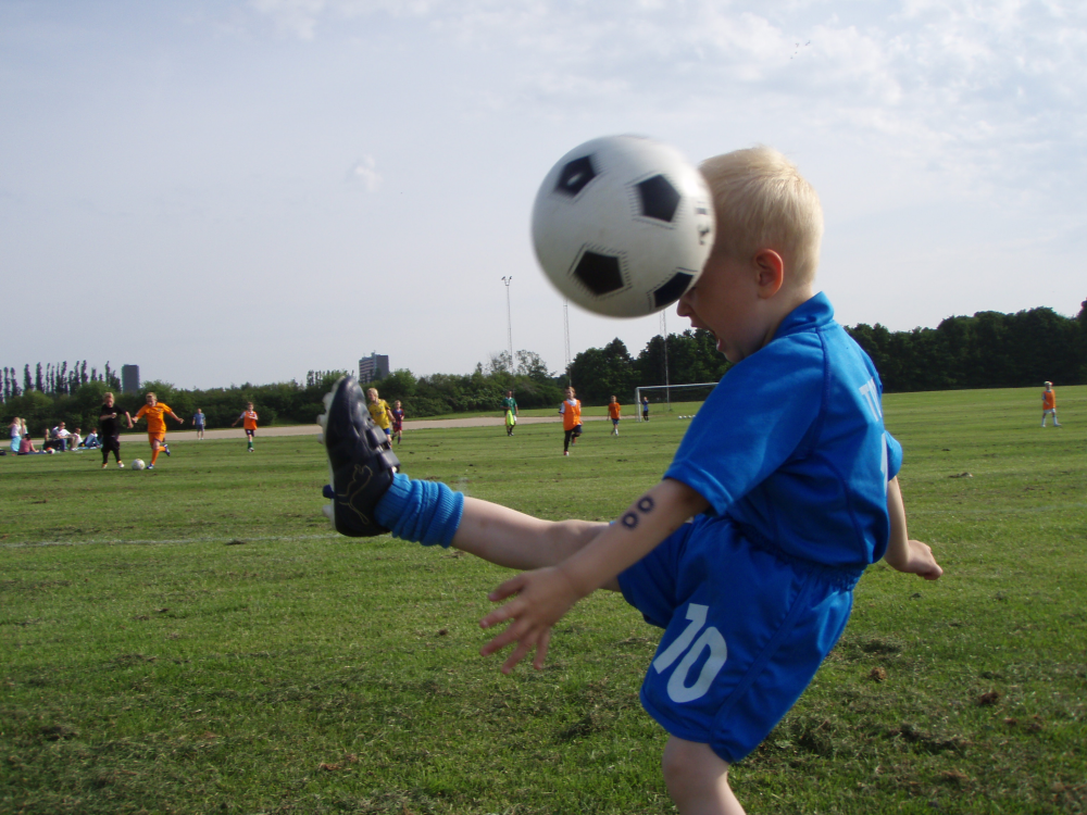 - Billedet forestiller min søn Albert på fire år, som var med til sin storebrors fodboldtræning på Avartas baner i Espelunden, Rødovre. Her skulle han lave en hel-flugter, men som det kan ses, fejlbedømte han en lille smule, fortæller Michael Thorsager.