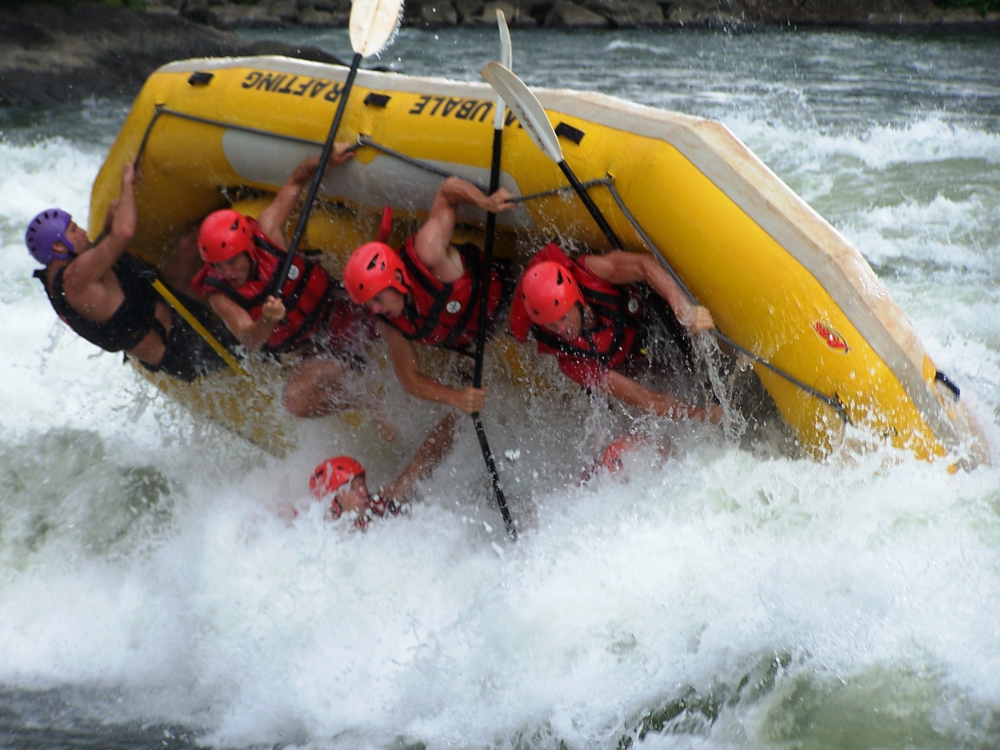 - Vi er et par gutter, som prøver river-rafting på Nilen. Som I kan se, vælter båden flere gange, men hold k