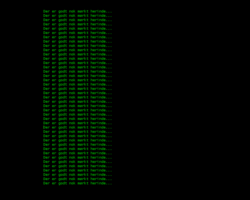 Det er et enkelt skriveprogram, der fokuserer på teksten og ikke andet. Som udgangspunkt er baggrunden sort, fylder hele skærmen og teksten grøn - og så er det bare med at skrive.