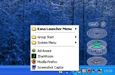 Slip for genveje på skrivebordet og i Start-menuen med Kana Launcher, der starter programmer fra Systembakken. Her ligger Kana Launcher og ved at højreklikke, kan du hurtigt starte et program. Eller flere programmer samtidig.