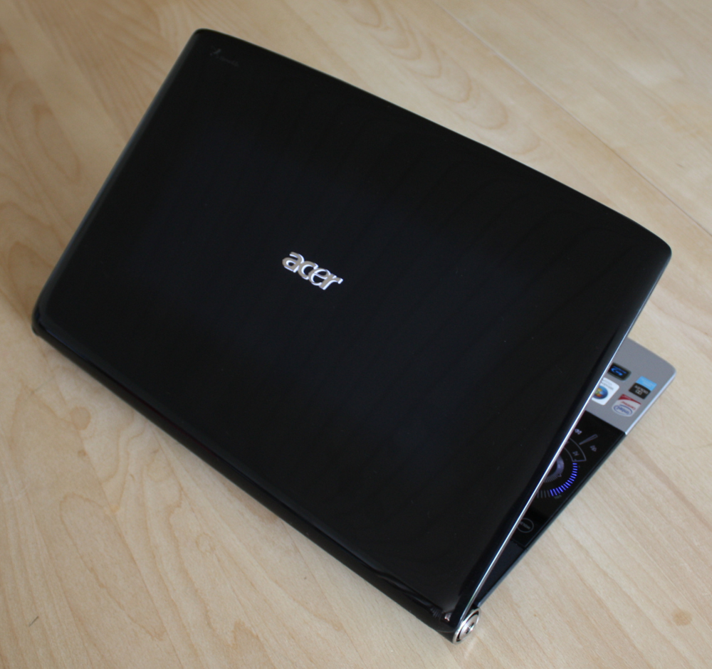 Det ambitiøse design fortsætter på skærmlåget, hvor Acer-logoet lyser op med en bleg 3D-effekt.