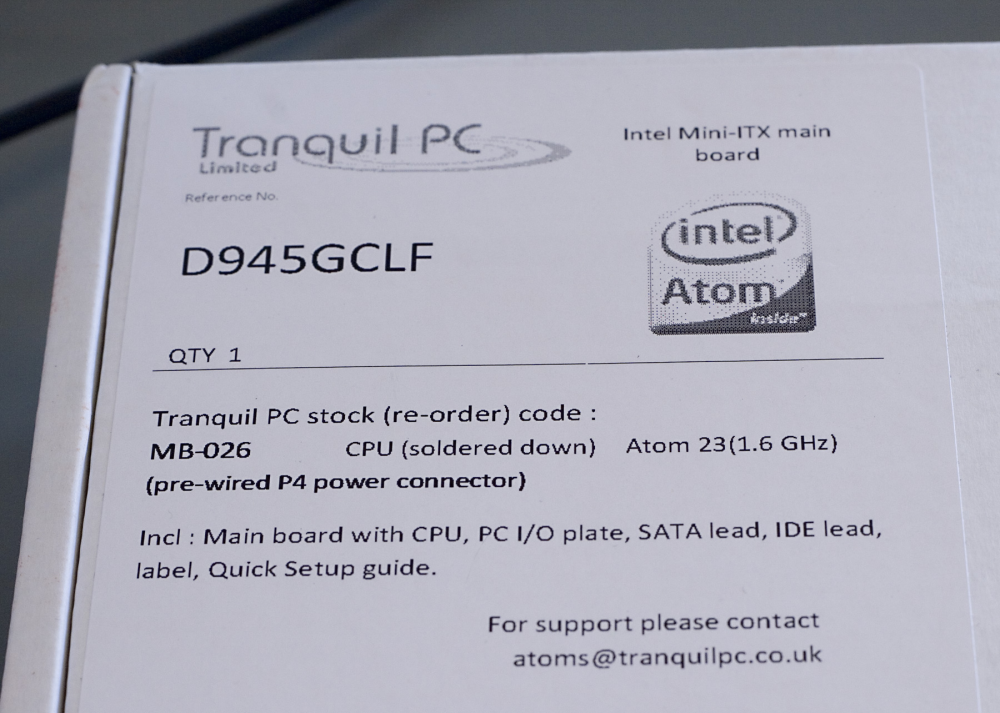 Vi valgte at bestille et motherboard baseret på Intel D945GCLF og en Intel Atom 230 processor på 1,6 gigahertz. Processoren udvikler blot fire watt (kaldet TDP). Til sammen koster de to centrale elementer blot 450 kroner.