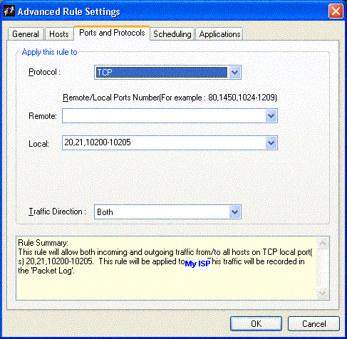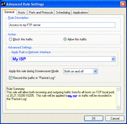 Ser rigtigt ud. Jeg ved så ikke om du også skal lave en magen til, der også tillader incoming. Det er vel bare at prøve om det virker. Jeg ville nu lave en rule med password, og hvilke mapper de må få adgang til. jeg mener at det er muligt i Sygate.