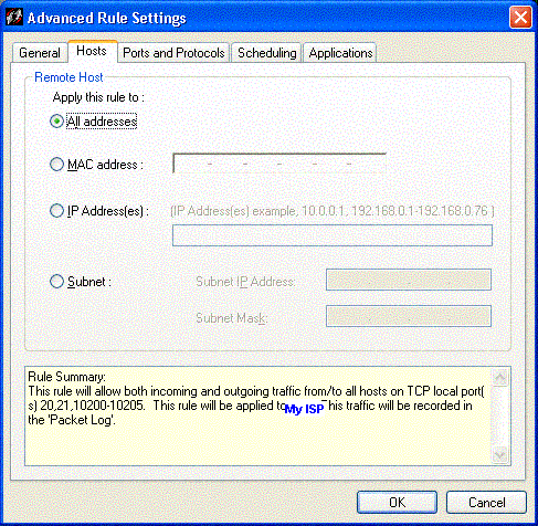 Det er godt nok et stykke tid siden at jeg har haft Sygate, og det var den gratis, men jeg gætter på at det er det samme i pro versionen. Tools > Advanced Rules > Add > Ports and Protocols. Her kan du så indsætte hvilke ip adresser der må få adgang, evt. til hvilke porte, hvilket tidsrum, og hvilken type protokol der skal anvendes. Det er svært at være mere specifik, men der lidt flere detaljer, og screenshots her http://forum.gladiator-antivirus.com/index.php?showtopic=11735. Håber det hjælper.