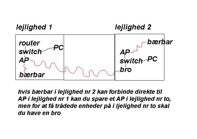 tråløst netværk mellem 2 lejligheder