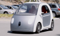 To knapper og en lille skærm, der viser ruten, udgør hele instrumentbrættet i Googles nye selvstyrende bil. Se video af den sjove lille bil her.