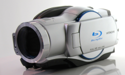 Hitachi er parat med et hybridt videokamera, der både optager på harddisk og dvd-skiver i det nye Blu-ray format. Se video af verdens første Blu-ray videokamera her.