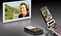 Projektorerne bliver stadig mindre, og den her er på størrelse med en tændstikæske og kan vise billeder og video fra mobiltelefoner og andre mobile enheder.