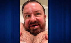 Komikeren Ricky Gervais er aktiv på Twitter, og han gør sig umage for at smide bizarre badekarsfotos på det sociale medie. Da han gæster et talkshow, har han endda en overraskelse klar - samt sin smarttelefon.