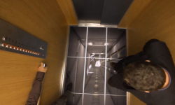 Med en gennemtænkt joke "forsvinder" gulvet i en elevator. Se reaktionerne her.