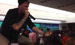 De ansatte fik fingeren, og der blev trampet på computere. Amerikansk rapper gik grassat i Microsoft-butik, hvor han var hyret til at optræde.