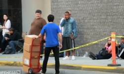 Flere steder i USA stod folk i kø for at være de første til at få fingre i den nye iPhone 5. Men de endte også med at blive ofre for en snedigt udtænkt joke.