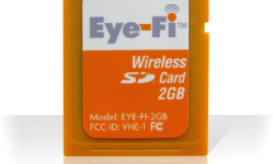 Det lille Eye-Fi-kort ligner et helt almindeligt SD-kort, men indeni gemmer sig et trådløst netværk. Det sørger for, at billederne bliver smidt direkte på nettet, så snart kameraet kommer hjem. Vi er imponerede.