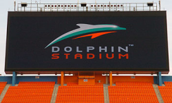 I Miami er verdens største HD-tv taget i brug. Den specialbyggede skærm er på 1.750 tommer og fem etager højt.