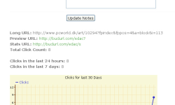 Bruger du af og til webtjenester til at lave et langt link kort, så prøv Budurl, der også giver dig statistik over, hvor mange der klikker på dit nye link. Prøv det her.