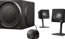GigaWorks T3 højttalersystemet fra Creative snupper næsten ingen plads på skrivebordet - men dog lidt mere under det til subwooferen - og spiller trods størrelsen godt op til dans. Vi fik et smuglyt af de små, imponerende højttalere.