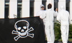 En gruppe anonyme aktivister løb i morges ind til it-virksomheden CSC's hovedkontor. Her byttede de CSC's logoflag ud med piratflag.