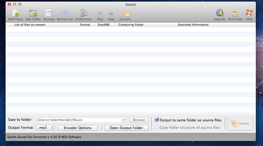 Switch hjælper dig med at konverter dine lydfiler til et format, som kan afspilles i iTunes.