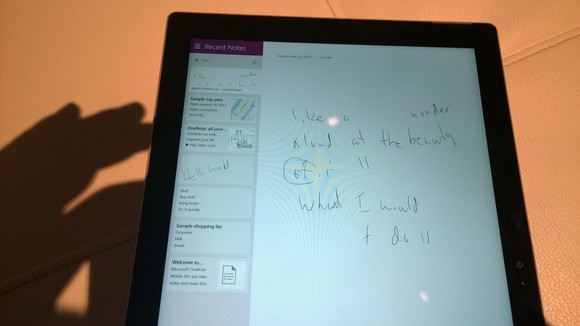 Med OneNote-programmet kan man skrive notater og lignende med stylus-pennen direkte på skærmen, der dermed kommer til at fungere som et stykke papir.